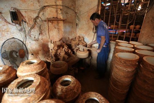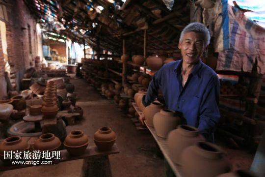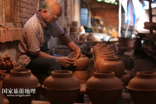 國家旅游地理 廣西河池8月6日訊 8月4日,顏福友師傅在廣西宜州市郊區(qū)他的制陶作坊里給陶器上釉。在廣西宜州市郊區(qū),65歲的顏福友師傅經(jīng)營著他的傳統(tǒng)制陶作坊,作坊里除了顏師傅,還有他的老伴和兩名幫工。顏師傅14歲開始當(dāng)學(xué)徒制作陶器,如今掌握著許多手工制陶的獨門絕技,在作坊里,幫工只負(fù)責(zé)干體力活,制陶的關(guān)鍵部分都是顏師傅親手完成的。由于顏師傅制作出的陶器質(zhì)量好,許多花卉盆景、釀酒、食品等工廠單位向他訂做陶器產(chǎn)品。但是由于手工制陶辛苦單調(diào),效率低下利潤不高,顏師傅的手藝面臨著斷代失傳的危險。 /新華社發(fā)(覃剛 攝)