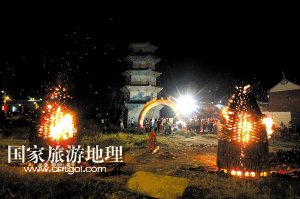 國(guó)家旅游地理 福建泉州9月20日訊(記者_(dá)黃偉強(qiáng) 秦越 文圖) 中秋夜,第三屆“燒塔仔”中秋民俗活動(dòng)在晉江安海安平橋畔白塔下舉行,兩座高4米、寬1.5米的磚塔里正冒著熊熊烈火,現(xiàn)場(chǎng)火光沖天,給安海老百姓帶來了別樣的節(jié)日歡樂。
