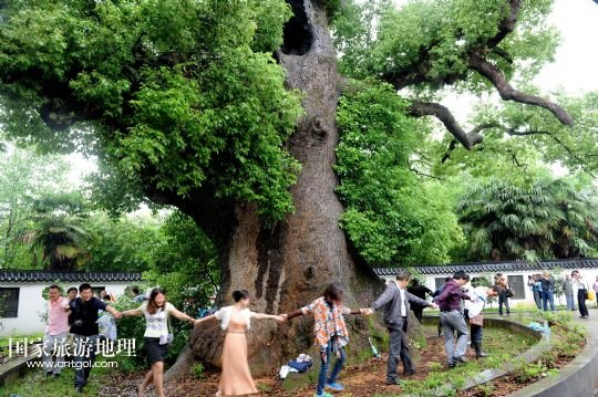 國家旅游地理 江西上饒5月18日訊 5月17日,游客在江西省德興市??阪?zhèn)??诖迩旯耪僚酝嫠?。江西省德興市??阪?zhèn)海口村有一棵1800多歲“高齡”的巨型古樟樹,歷史上曾遭受過多次雷擊、火災(zāi)等,其中最近的一次發(fā)生在2010年10月1日,由于村內(nèi)孩童進入可容納幾十人的樹洞內(nèi)玩耍,不慎引發(fā)火災(zāi),致使大火從樹洞里燒起,讓這棵千年古樟幾近滅頂。此后,當(dāng)?shù)卮迕褡园l(fā)捐款近6萬元,請來有關(guān)專家救治。經(jīng)過近4年的精心護救,如今這棵千年古樟再度逢春,枝繁葉茂,吸引了各方游客前來觀賞。 /新華社發(fā)(卓忠偉 攝)