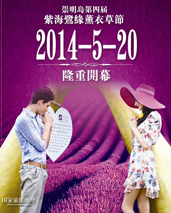 5月20日至6月20日,為期1個(gè)月的2014上海崇明島第四屆薰衣草節(jié)將在崇明島舉行,市民不用去法國普羅旺斯就可欣賞到紫色花海的美景了。此次活動(dòng)地點(diǎn)設(shè)在中國最美麗的“花園”——上海崇明島上的香草種植園紫海鷺緣浪漫愛情主題公園內(nèi)。