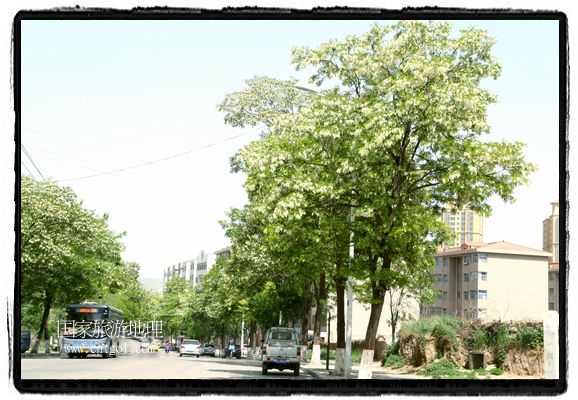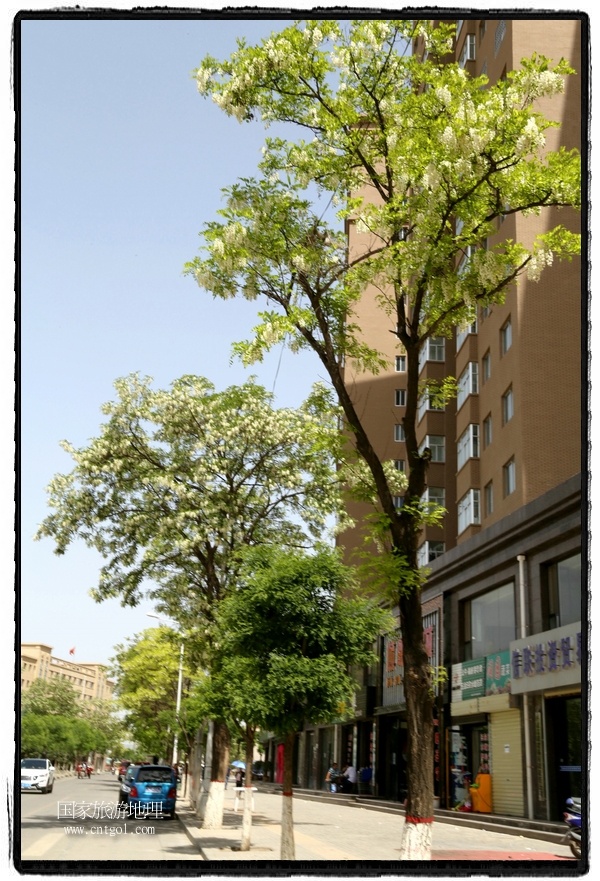國(guó)家旅游地理 甘肅平?jīng)?月31日訊(通訊員 鄭兵 攝影報(bào)道)日前,甘肅省平?jīng)鍪谐菂^(qū)各大主要街道兩旁的槐樹開滿花朵,一簇一簇,一串一串,白的像雪,美得像畫,冰肌綽約,清素高雅,滿街道彌漫著槐花的馥郁香氣,讓來(lái)往的行人為之陶醉。宋朝大文豪蘇東坡曾有詩(shī)云:“槐林五月蕩瓊花,郁郁芬芳醉萬(wàn)家。”據(jù)悉,槐花除了觀賞意外,用槐花做的湯飯還有開胃解毒瀉火等功效,是食藥兩用的的極品,被譽(yù)為“天賜的禮物”。