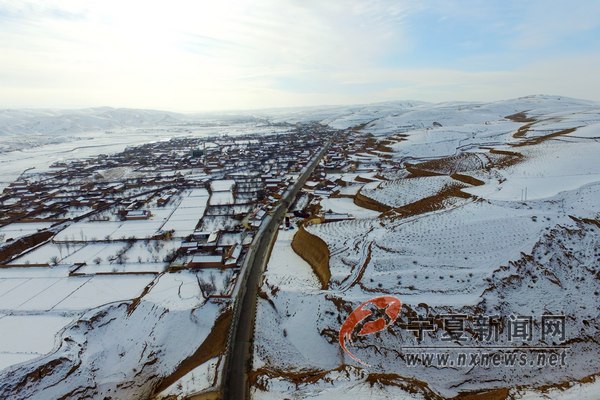 海原縣位于寧夏南部山區(qū),在這里山間分布著無數(shù)的小山村,雪后的小山村因為白雪的覆蓋擁有了別有滋味的寧靜與安逸。站在遠處,白雪、群山、蓋著白雪的村莊,淡淡的藍天,這一切相映成趣美不勝收。 寧夏新聞網(wǎng)記者 祁瀛濤 攝